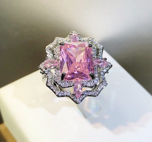 Elegant 18K Triple White Gold plated Lab Simulated pink Diamond Open Ring