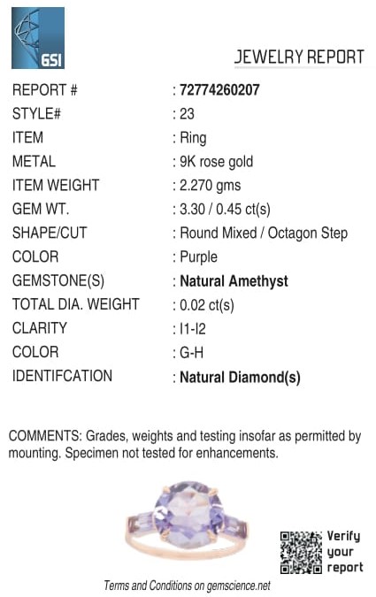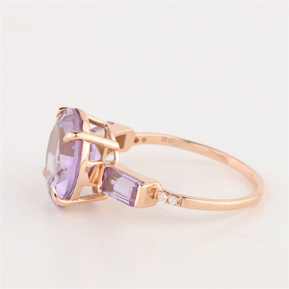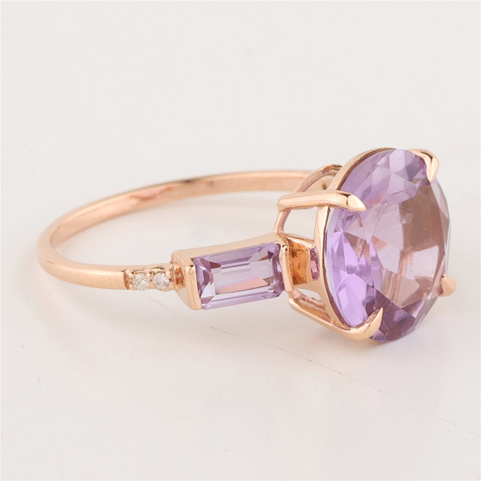 Certified Pink Gold Natural Amethyst / Natural Amethyst & Diamond Ring