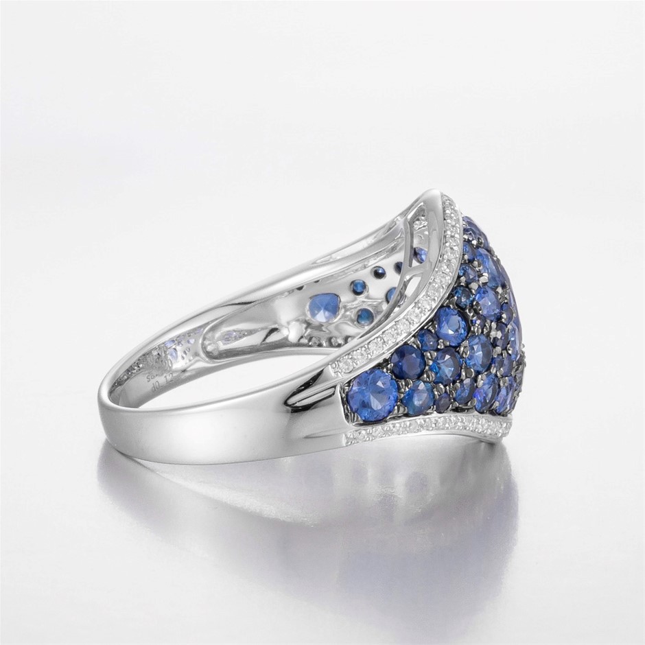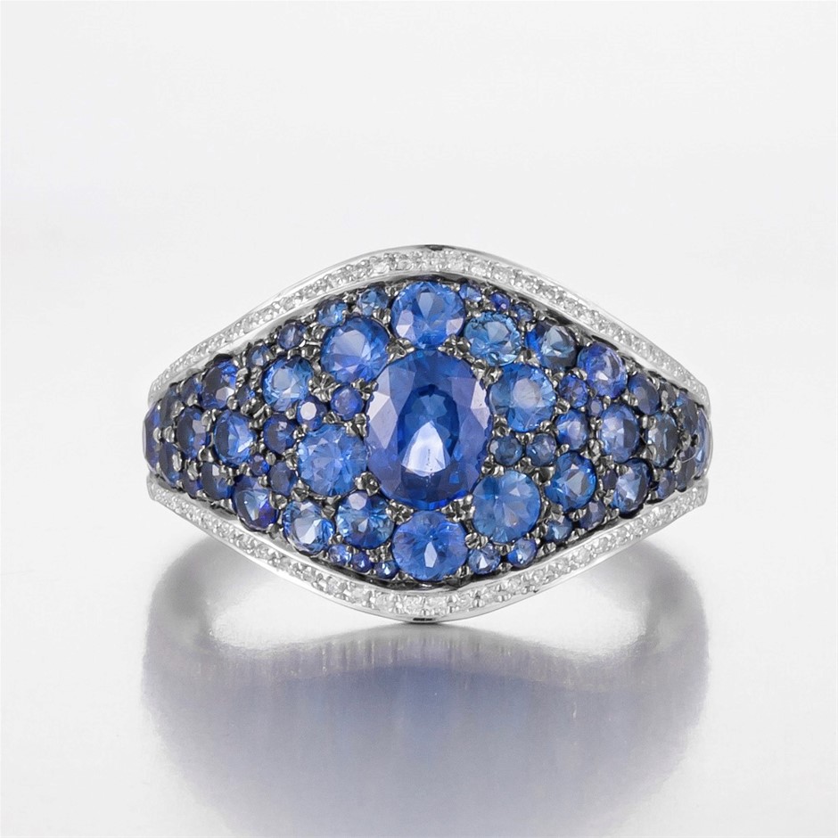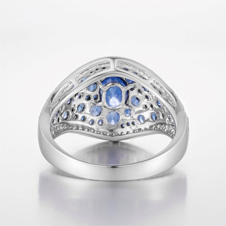 14CT White Gold Australian Sapphire and Diamond Cluster Ring
