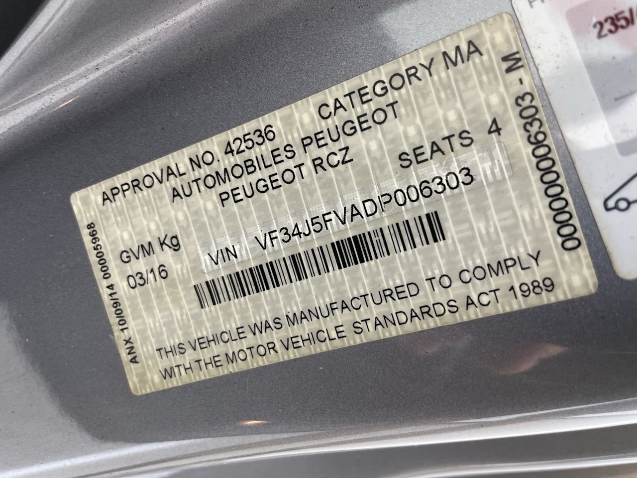 | Part of Sale | 2013 Peugeot RCZ Automatic Coupe | ||||||||||||||||