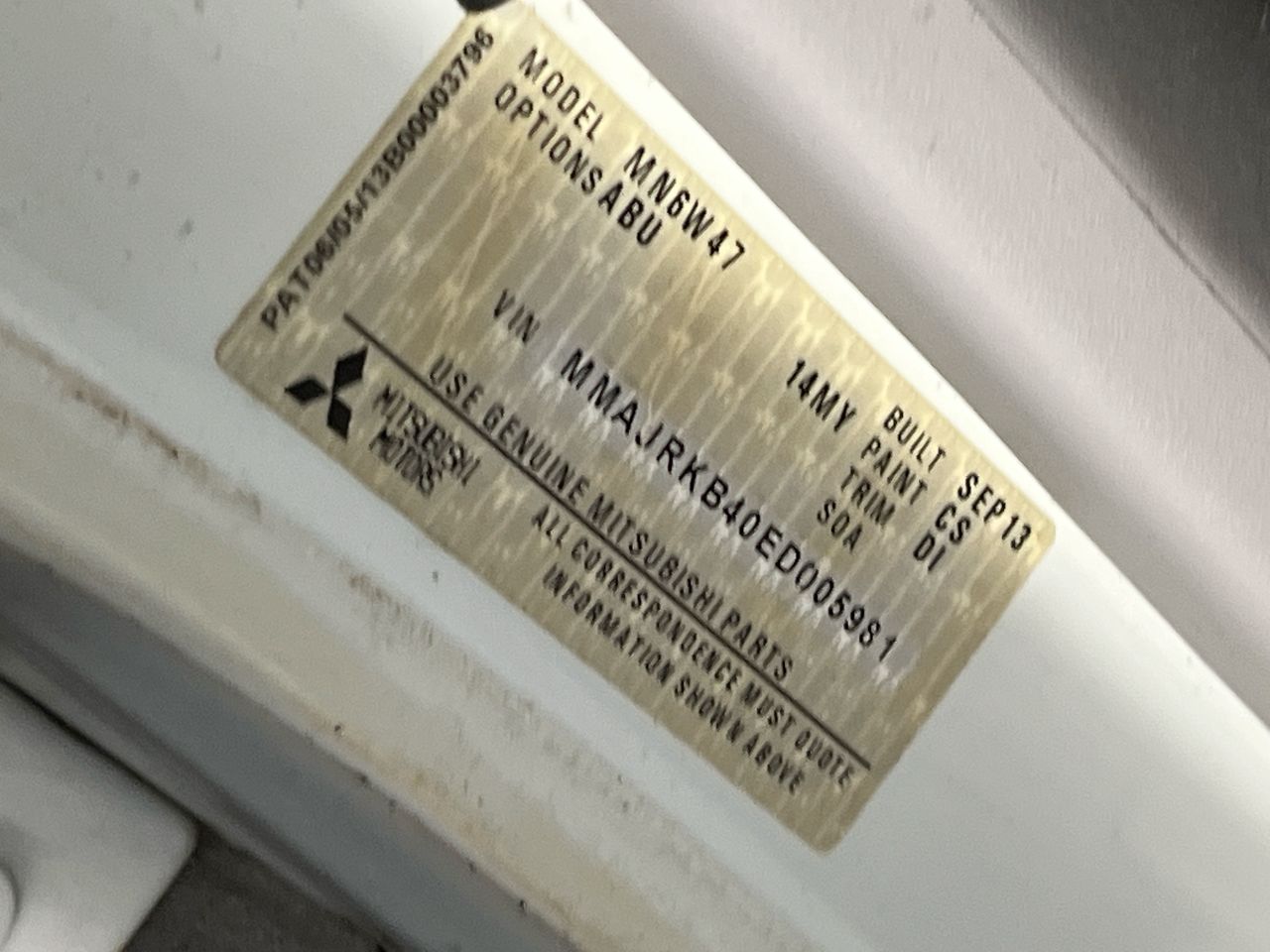 (SN:MMAJRKB40ED005981) (94367-1050)