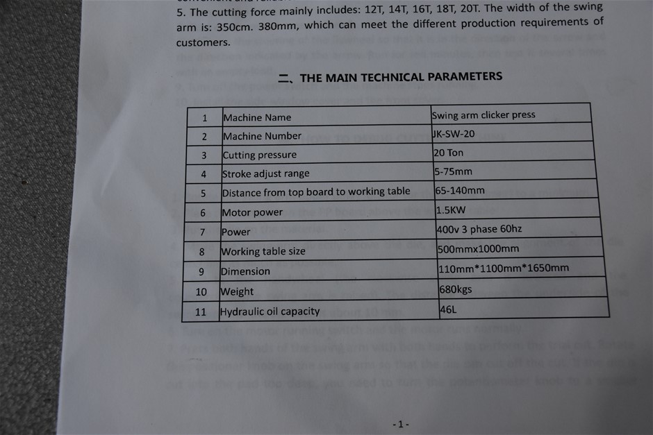 Jeakar XA-A-200 Hydraulic Swing Arm Clicker Press Machine
