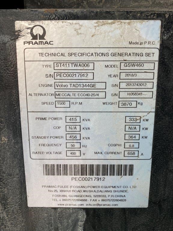 | Part of Sale | Pramac 460 to 275 KVA Generators | ||||