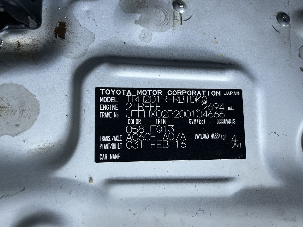 | Part of Sale | 2016 Toyota HiAce LWB TRH201R Automatic Van | ||||||||||