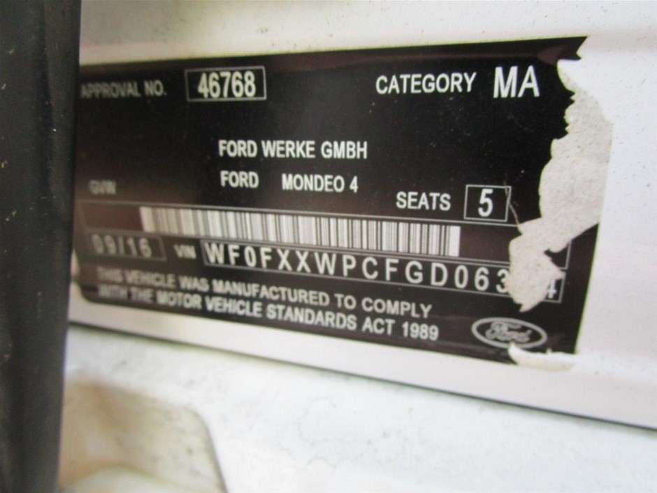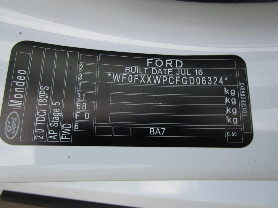 | Part of Sale | 2016 Ford Mondeo FWD Automatic Wagon | ||||||||||||||