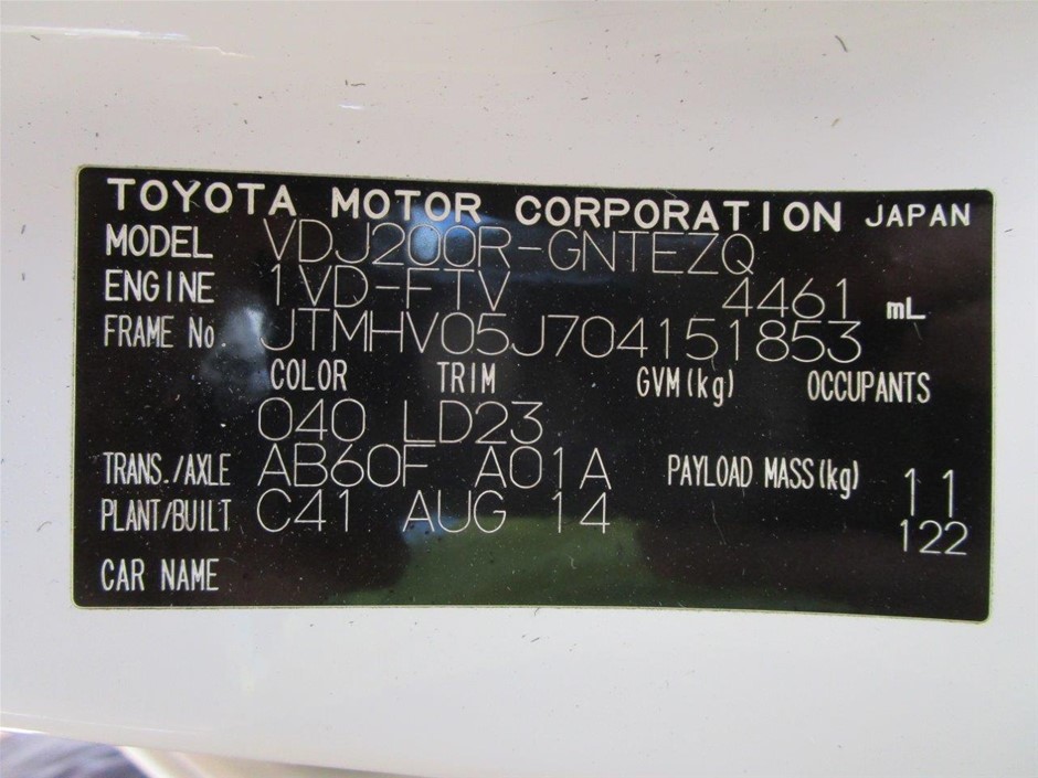 | Part of Sale | 2014 Toyota Landcruiser VX 4WD Automatic Wagon | ||||||||||||||
