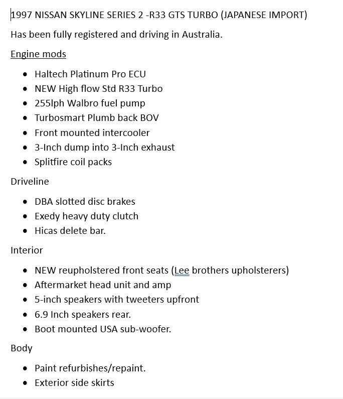 Part of Sale 1997 NISSAN SKYLINE SERIES 2 R33 TURBO GTS COUPE (IMPORT)