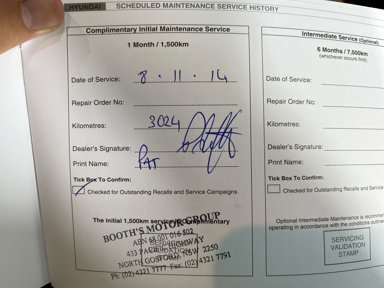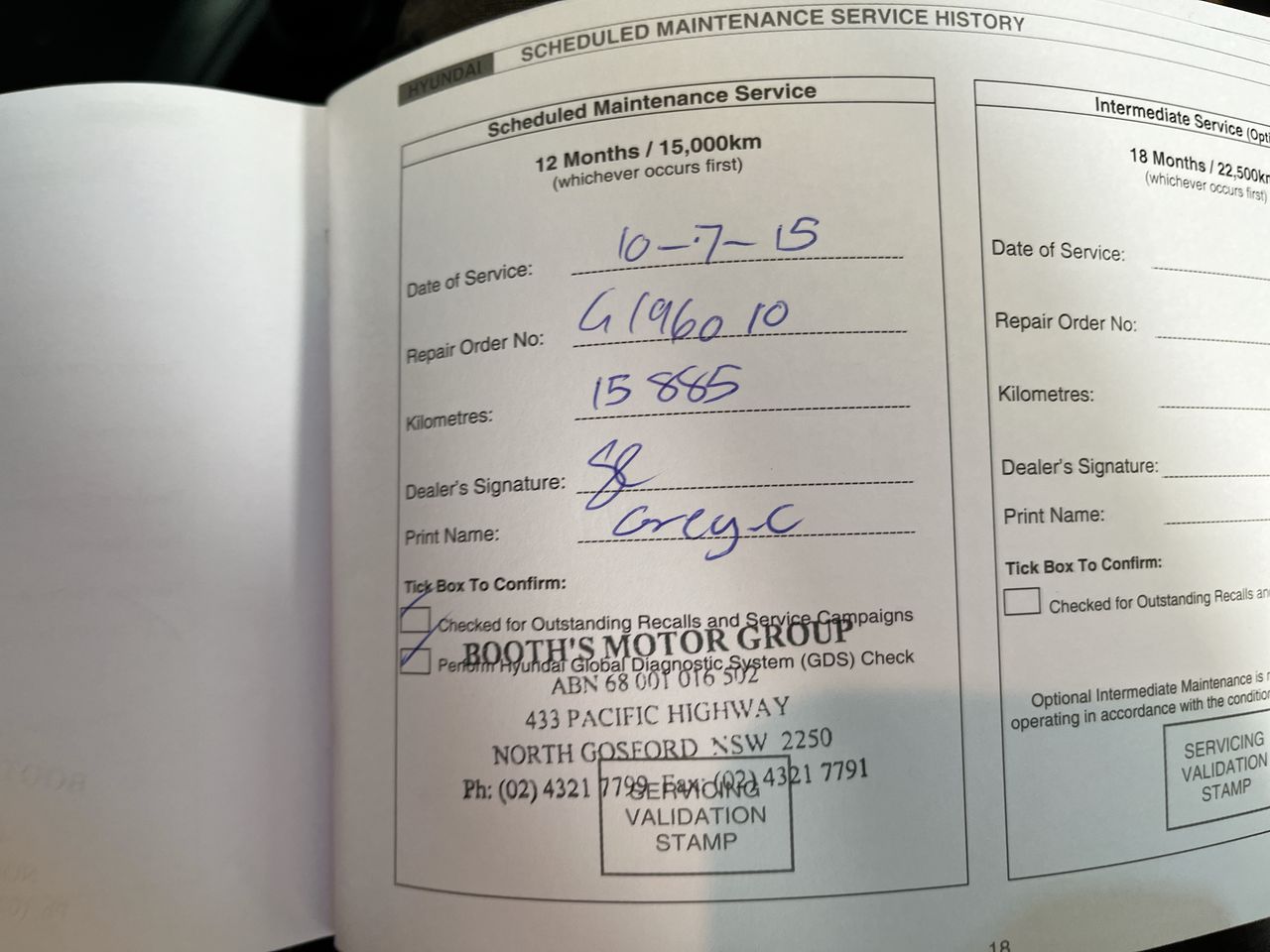 • Service History: Yes