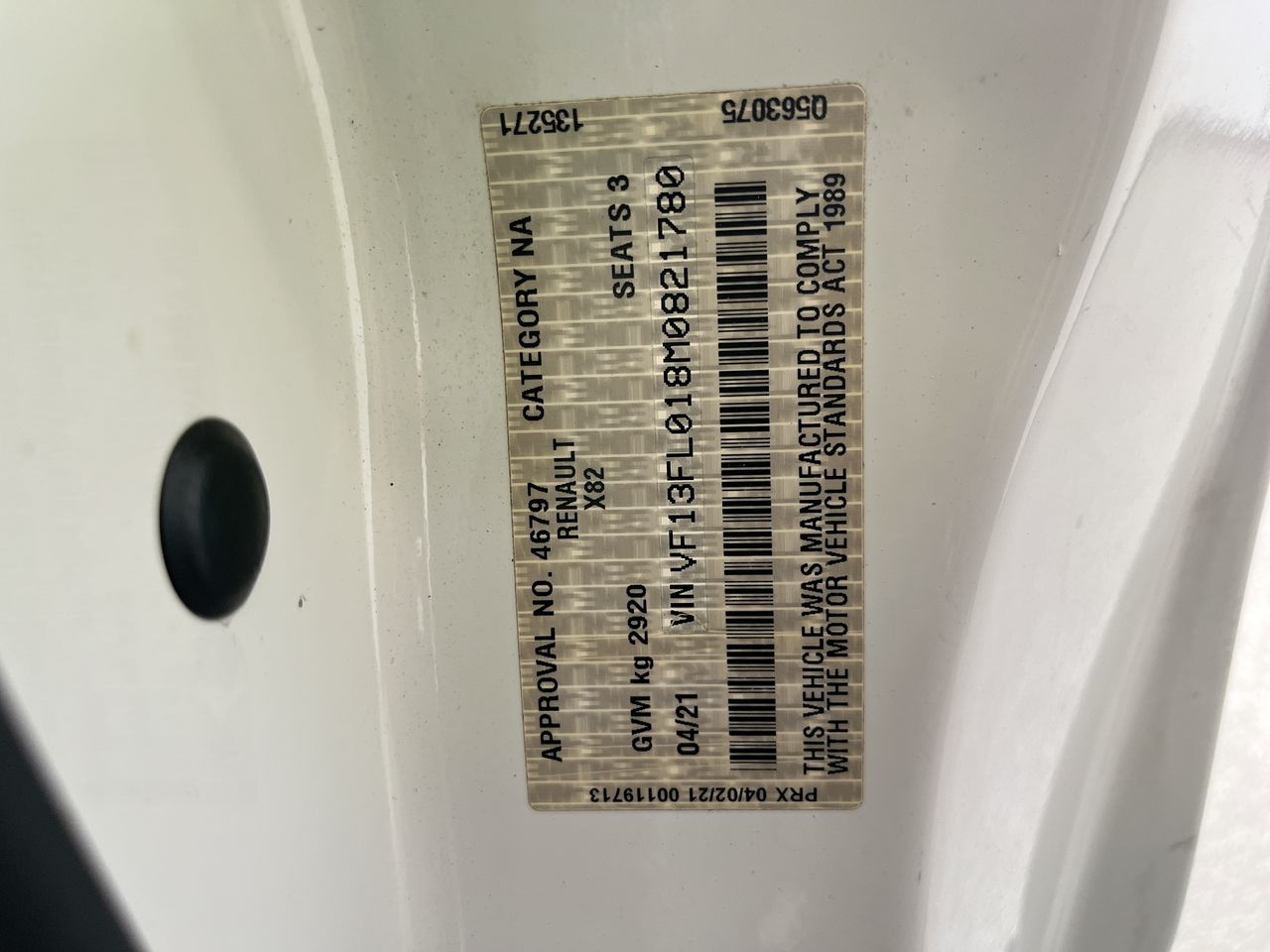 • VIN: VF13FL018M0821780