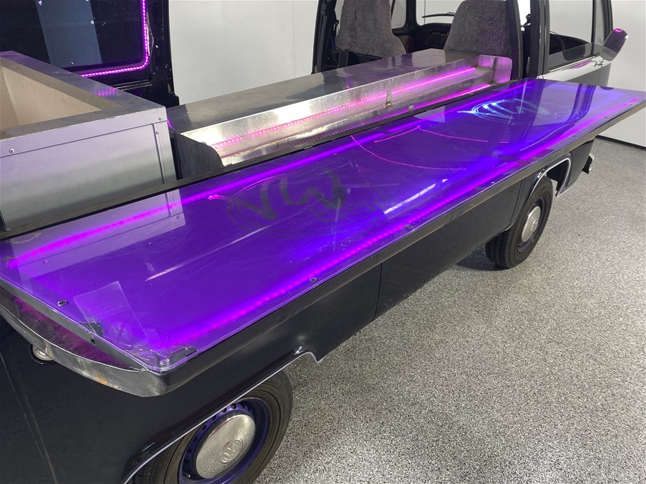 This VW Kombi has been coverted to fold out into a bar with extensive lighting system throughout.