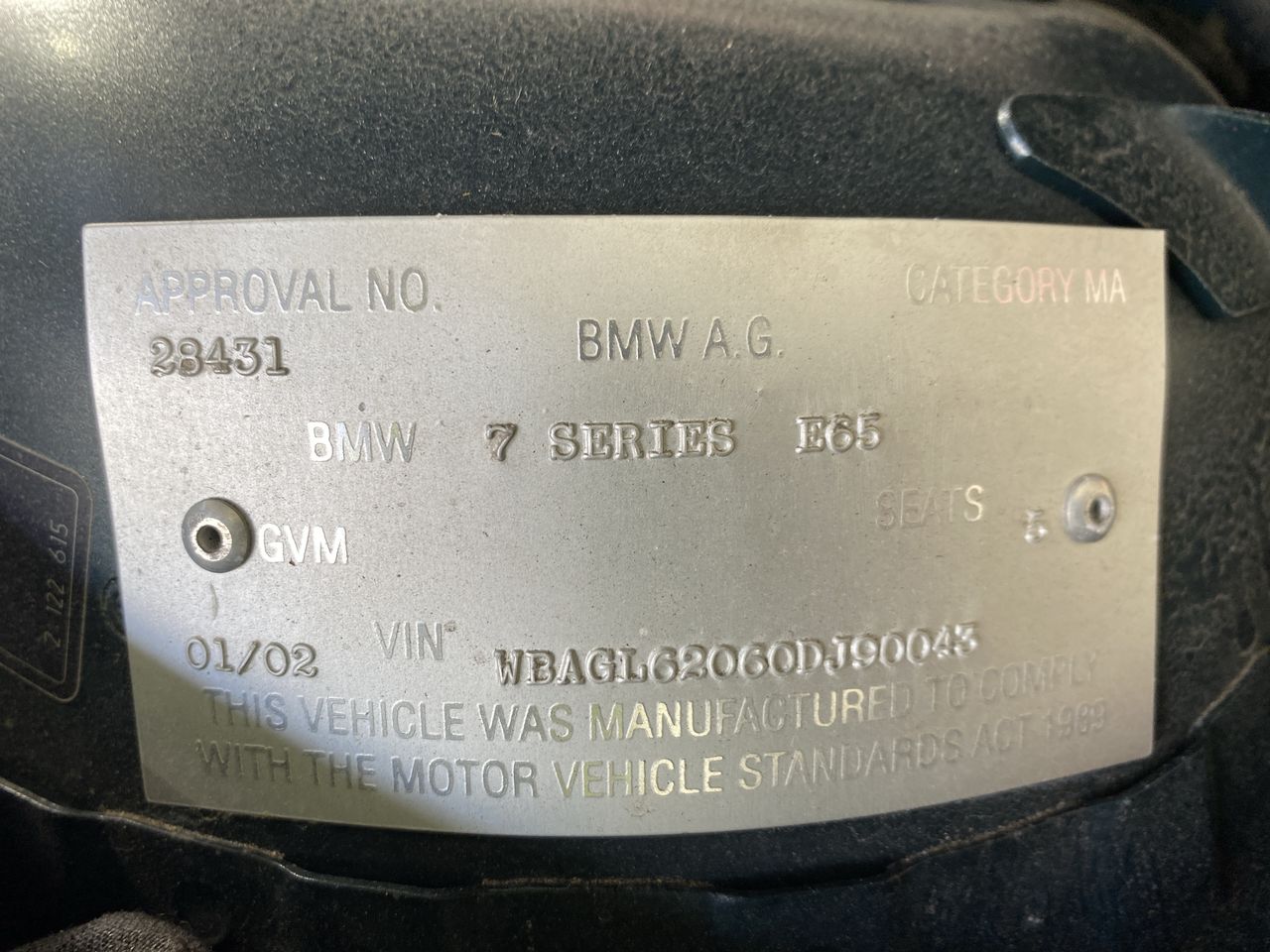 Part of Sale 2001 BMW 745i E65 Automatic Sedan