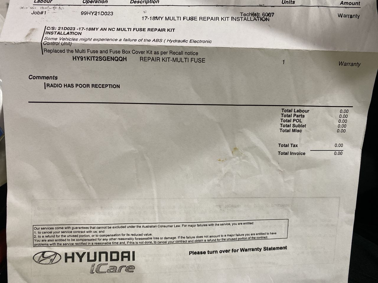 A statutory warranty or obligation to repair may be available. Please see further information for each state and territory.