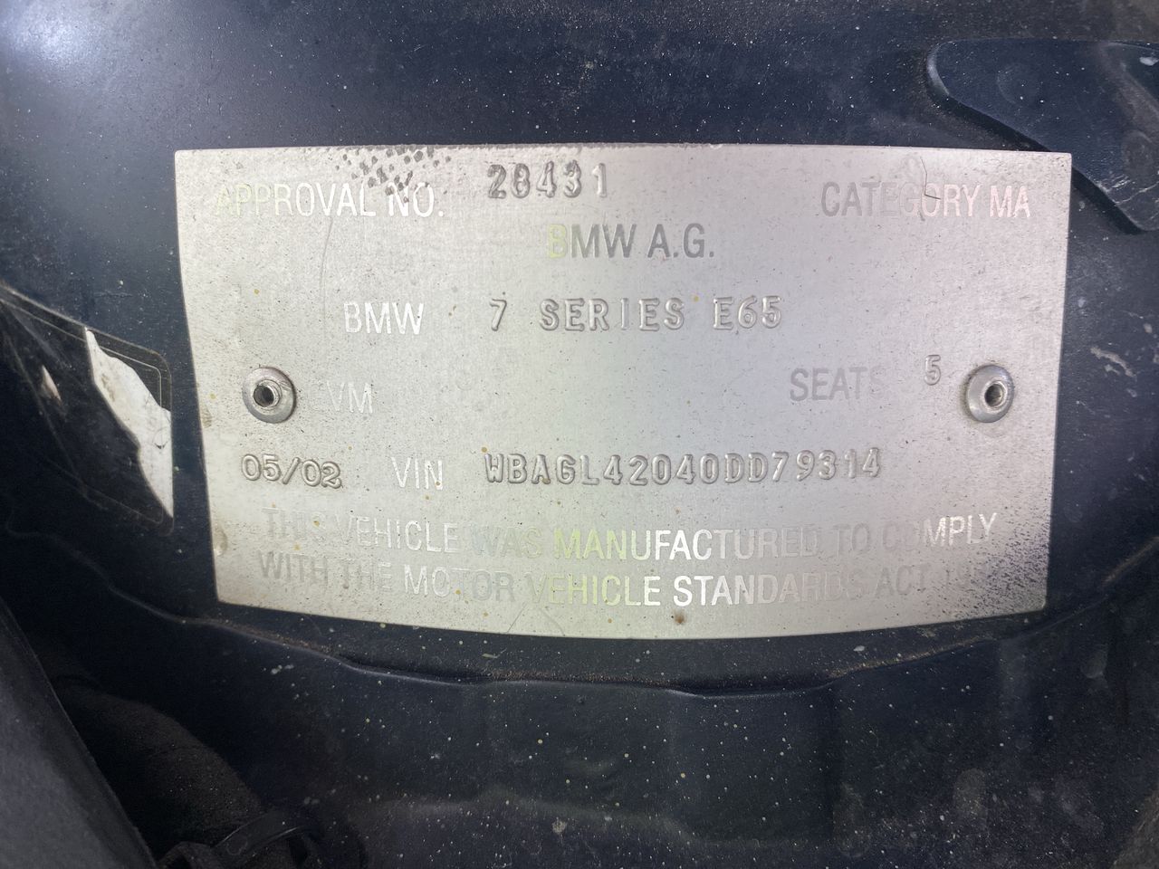 | Part of Sale | 2002 BMW 7 35i E65 Automatic Sedan | ||||||||||||||