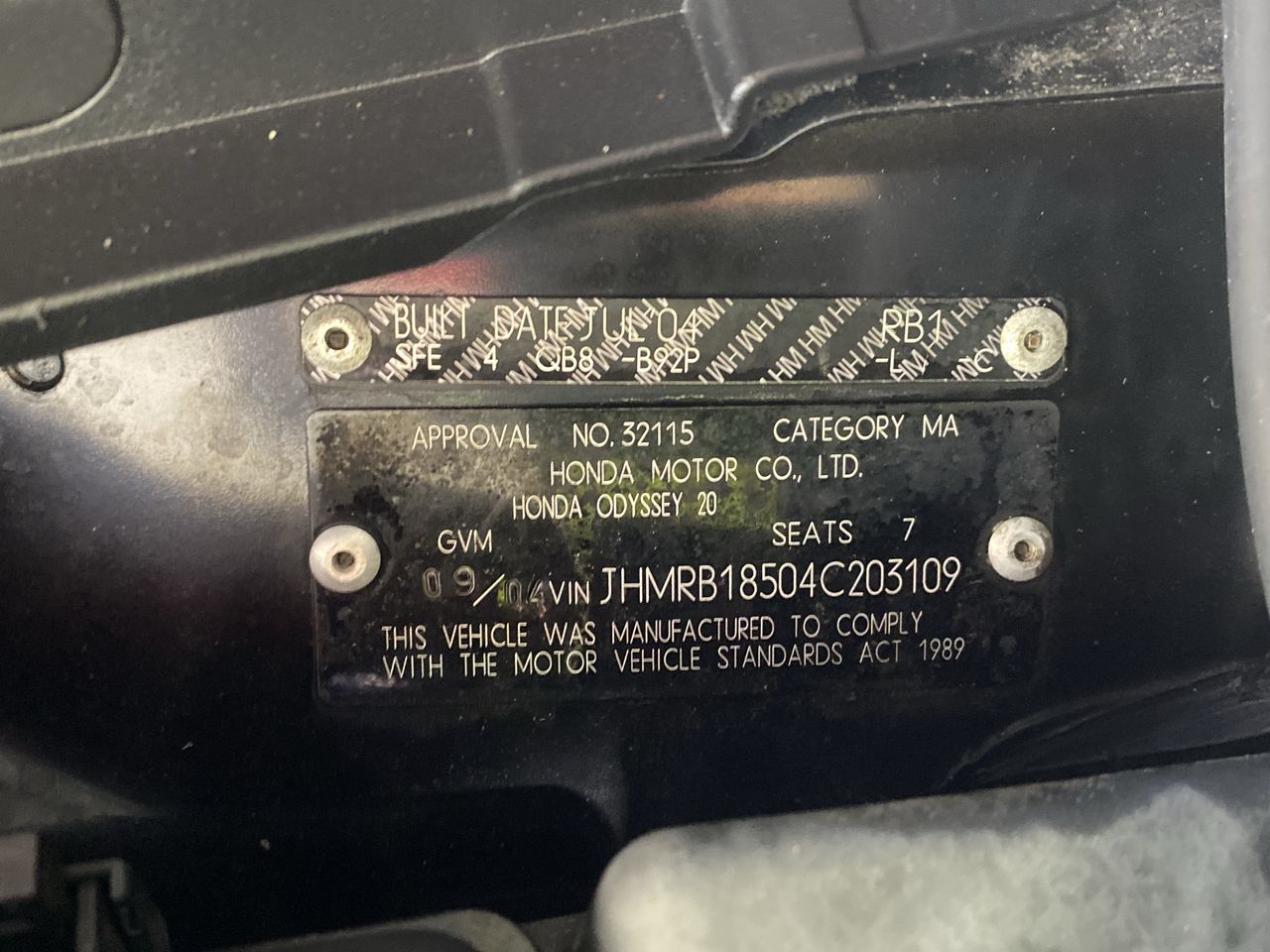 | Part of Sale | 2004 Honda Odyssey Luxury Automatic 7 Seats People Mover | ||||||||||||||