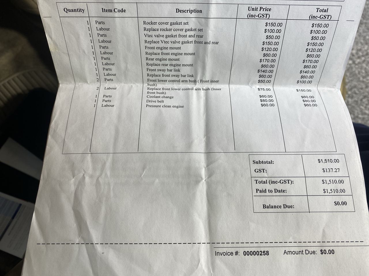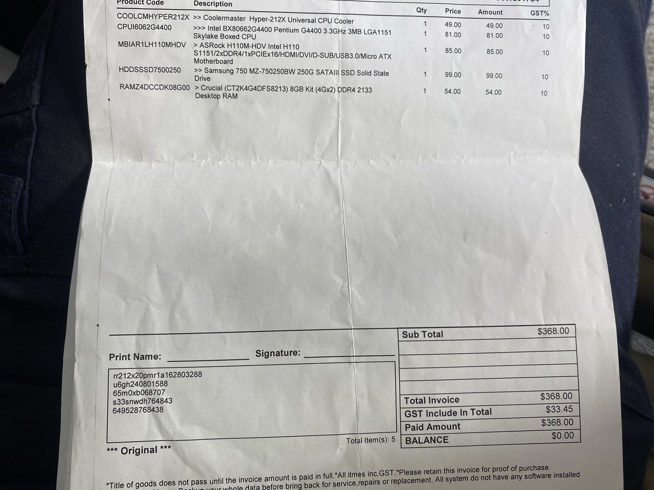 | GST: | Inclusive (see below note) | ||||||||||||||
