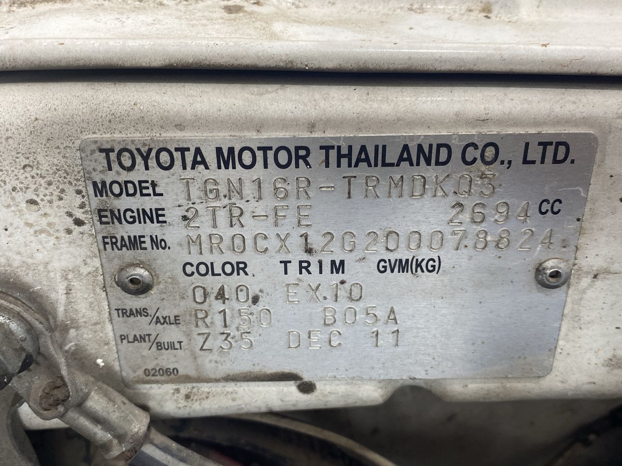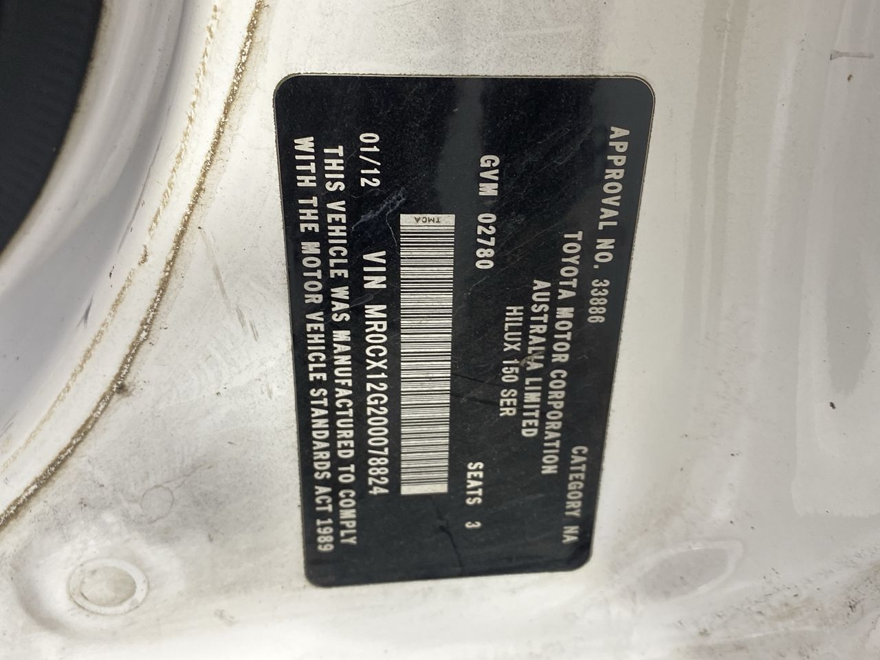 2011 Toyota Hilux Workmate TGN16R Manual Cab Chassis