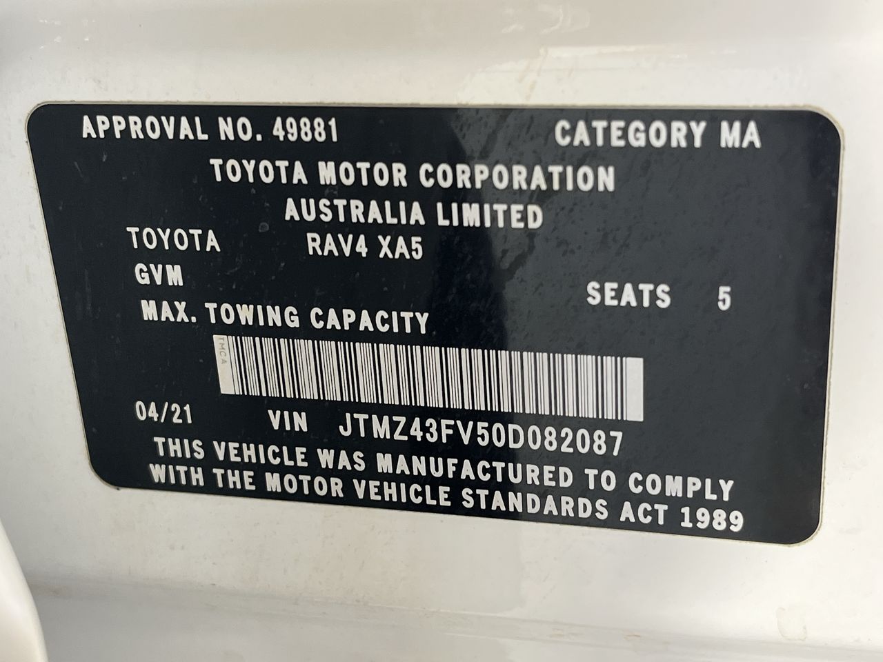 • VIN: JTMZ43FV50D082087