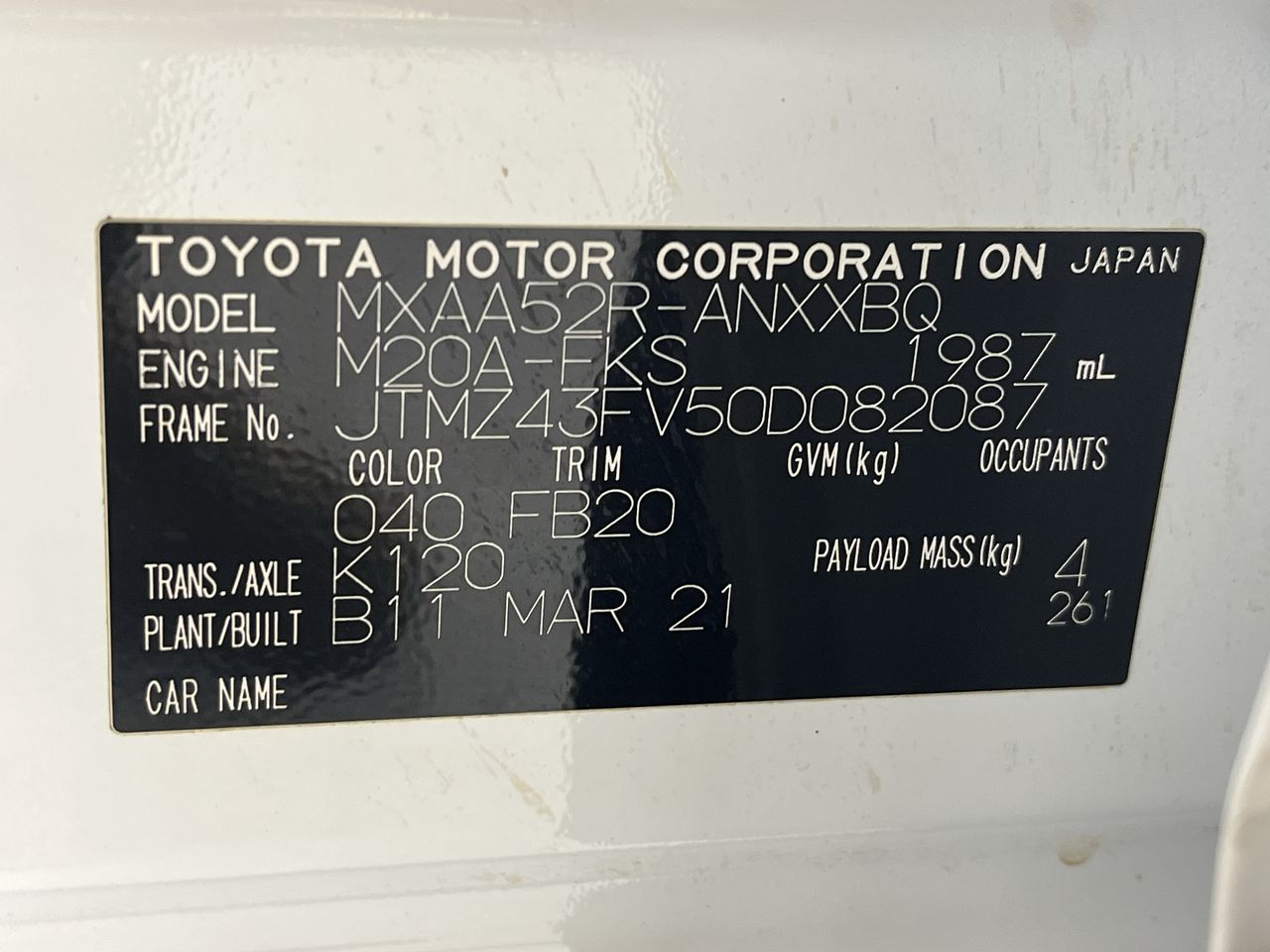 (SN:JTMZ43FV50D082087) (882240-125)