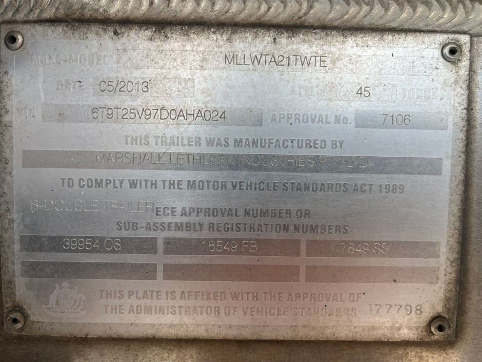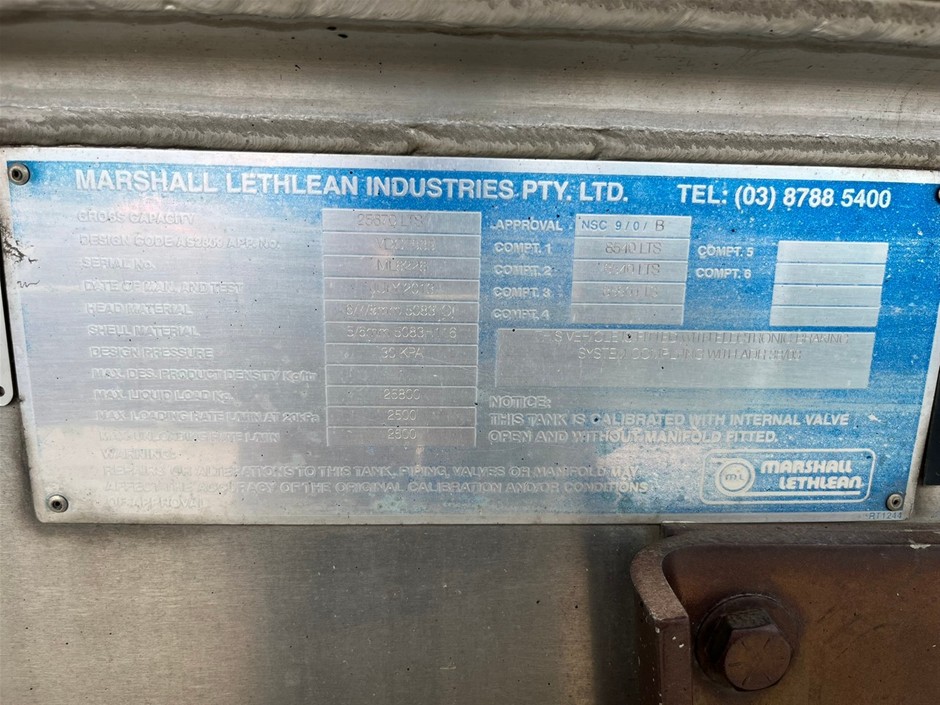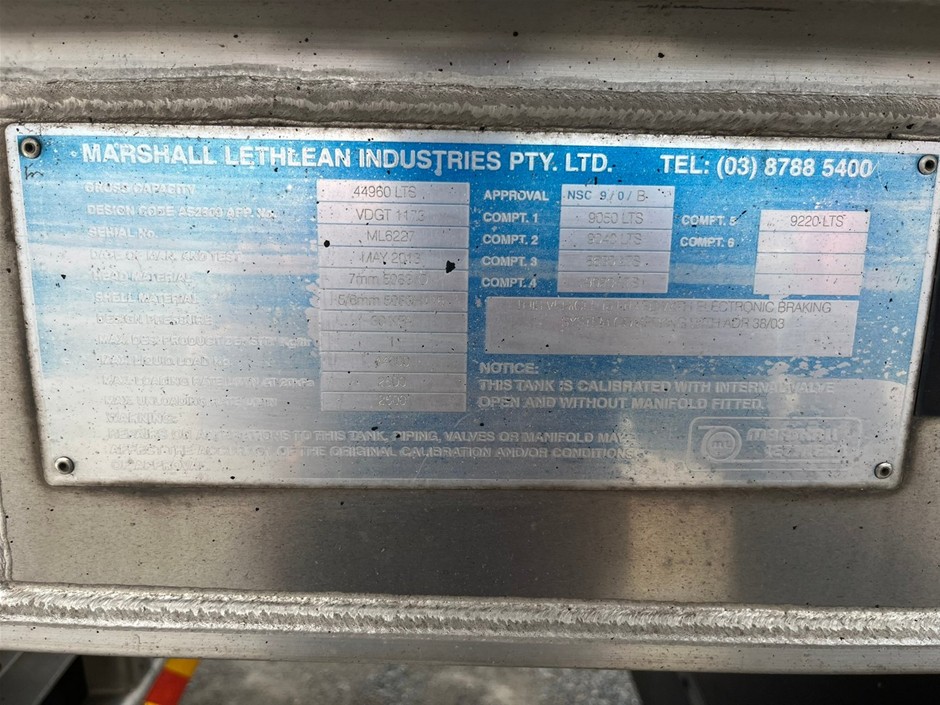 2013 Marshall Lethlean Fuel Tanker A/B Double Combination