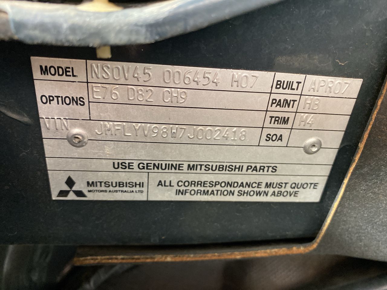 | Part of Sale | 2007 Mitsubishi Pajero VRX NS | ||||||||||