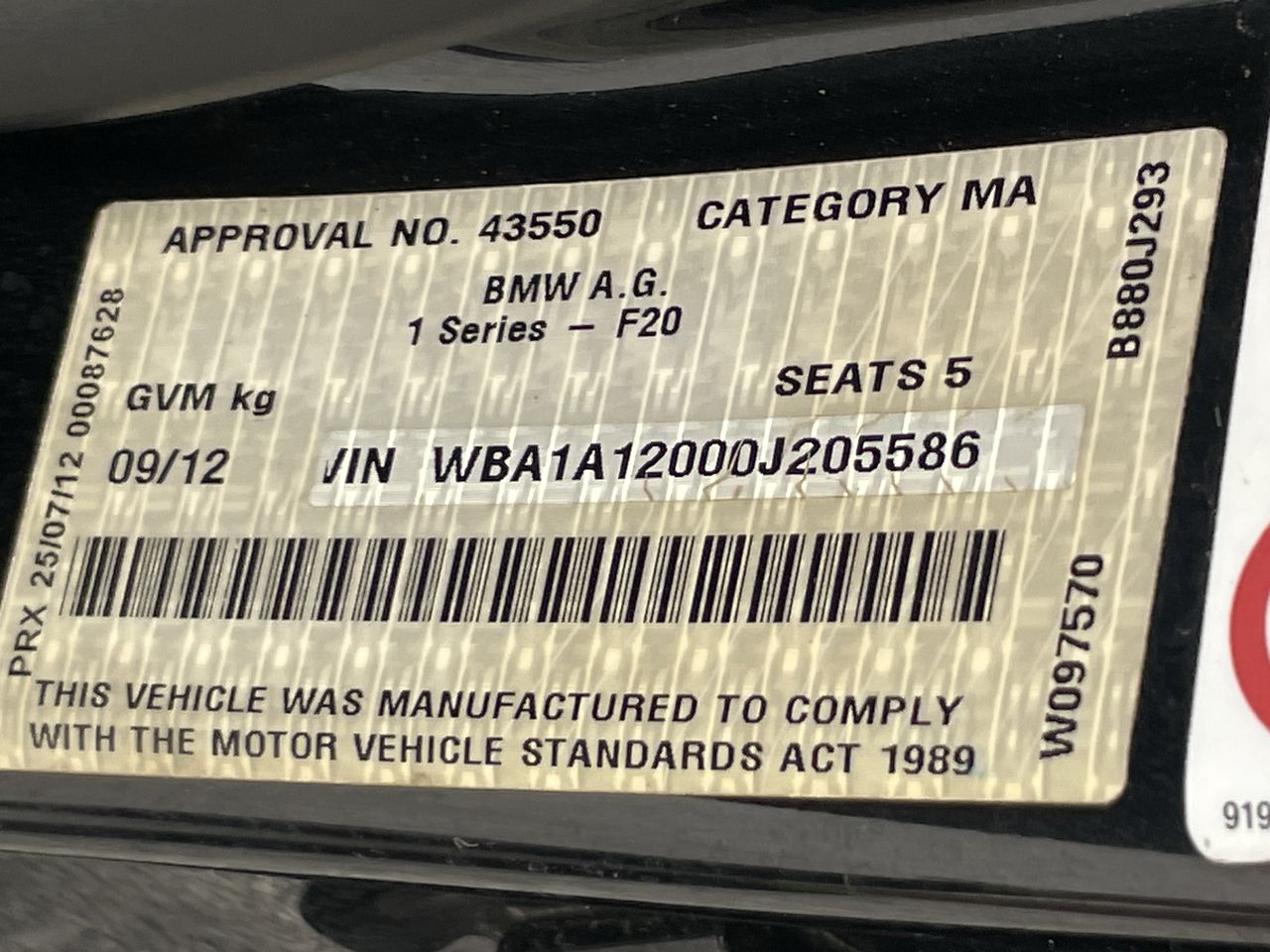 • VIN: WBA1A12000J205586