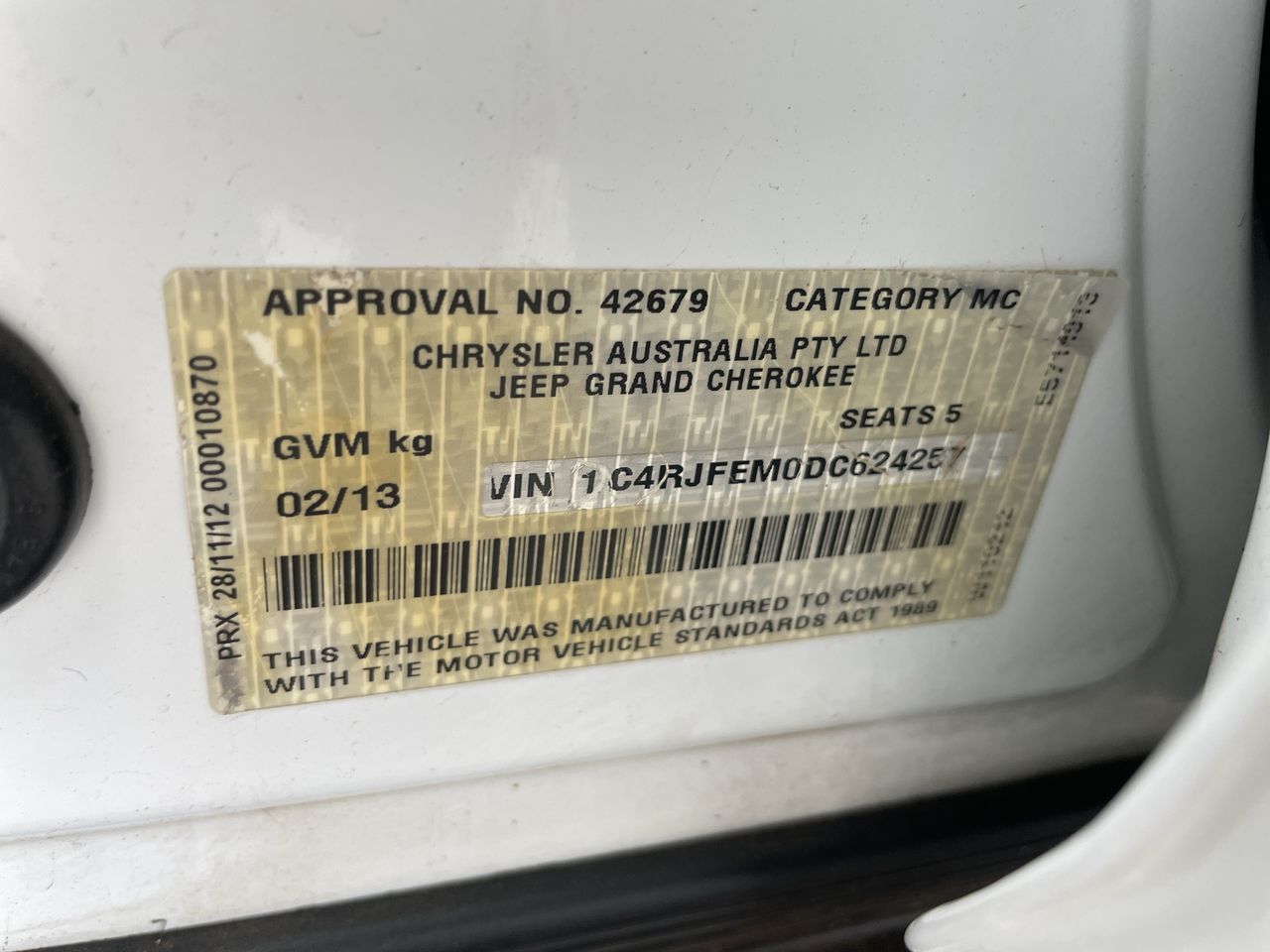 | Part of Sale | 2013 Jeep Grand Cherokee Laredo (4x4) WK | ||||||||||||||