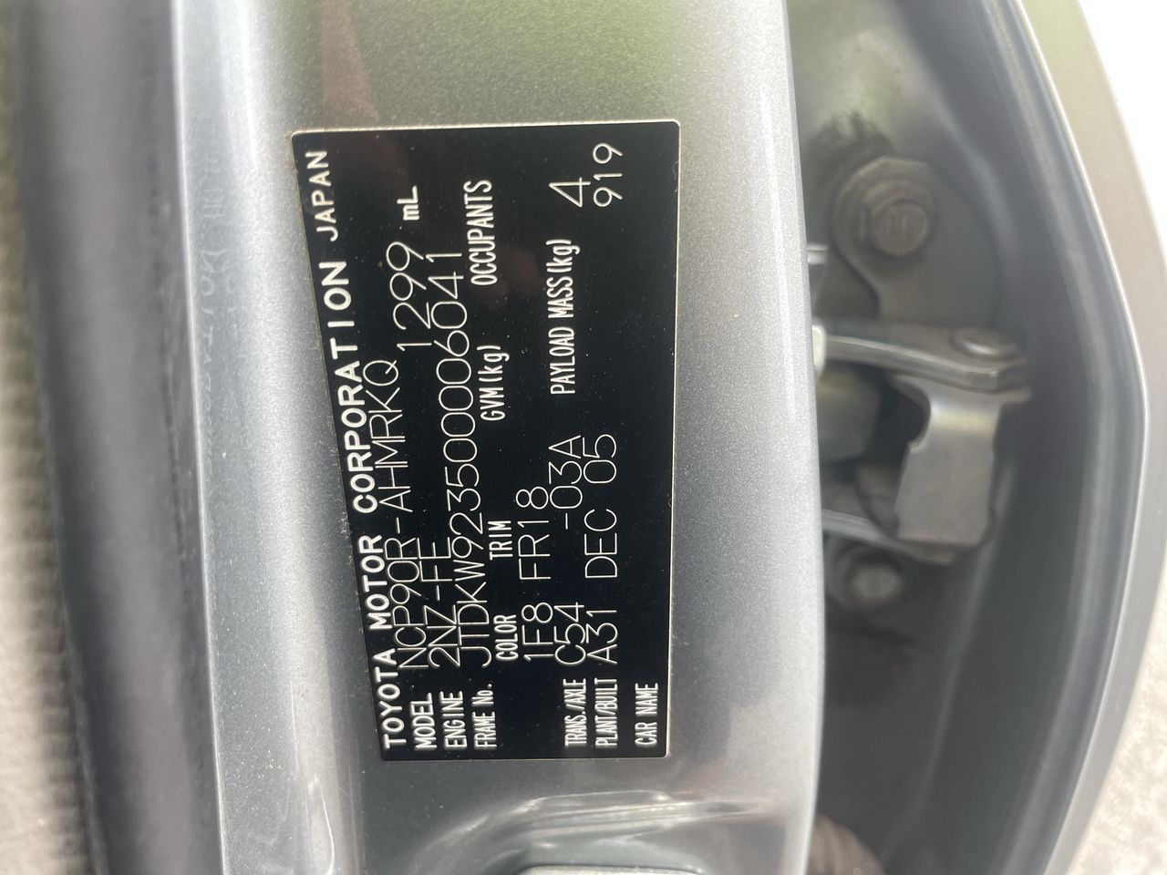 2005 Toyota Yaris YR NCP90R Manual Hatchback