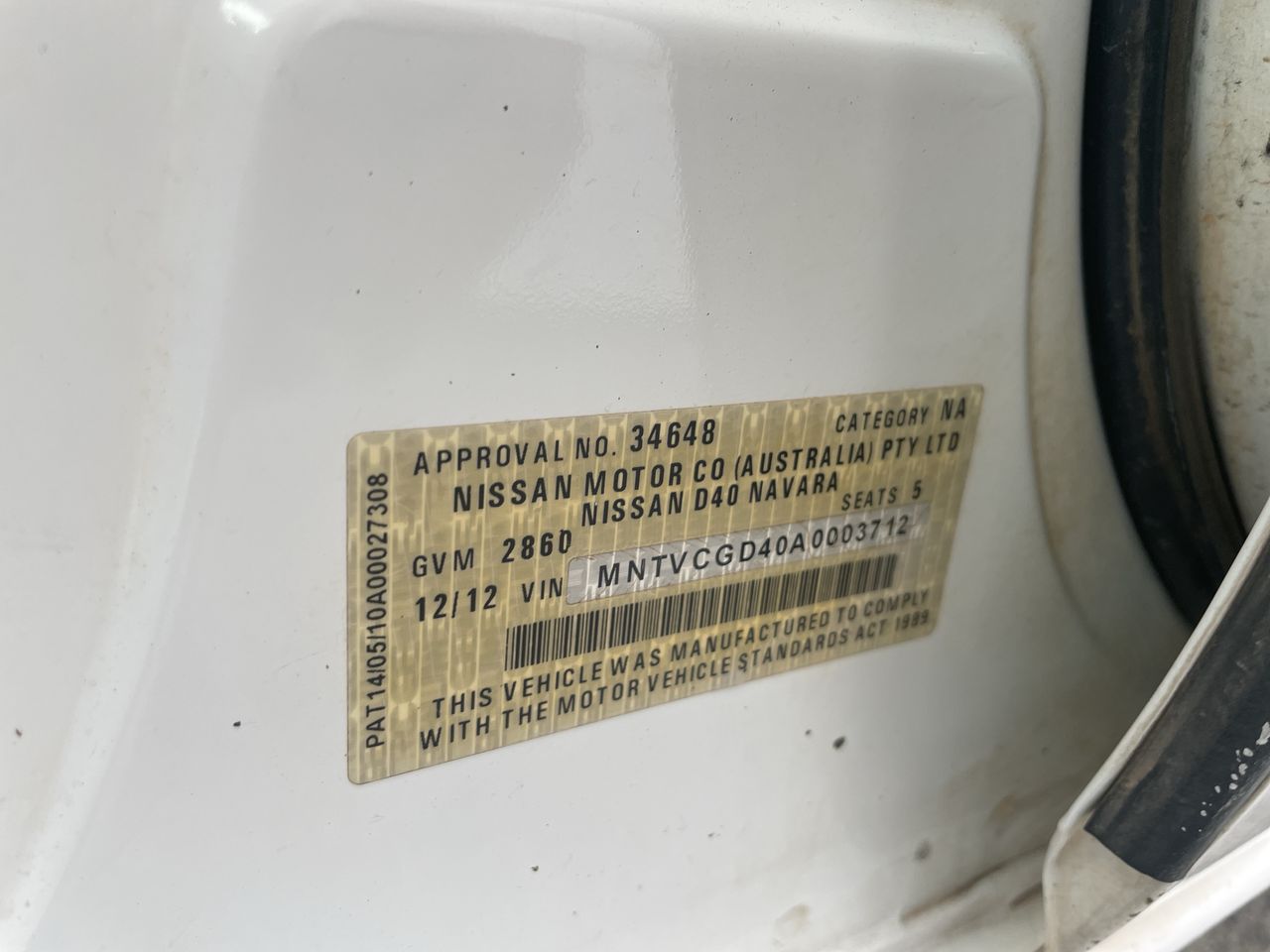 | Part of Sale | 2012 Nissan Navara DUAL CAB RX 4X2 D40 | ||||||||||||||