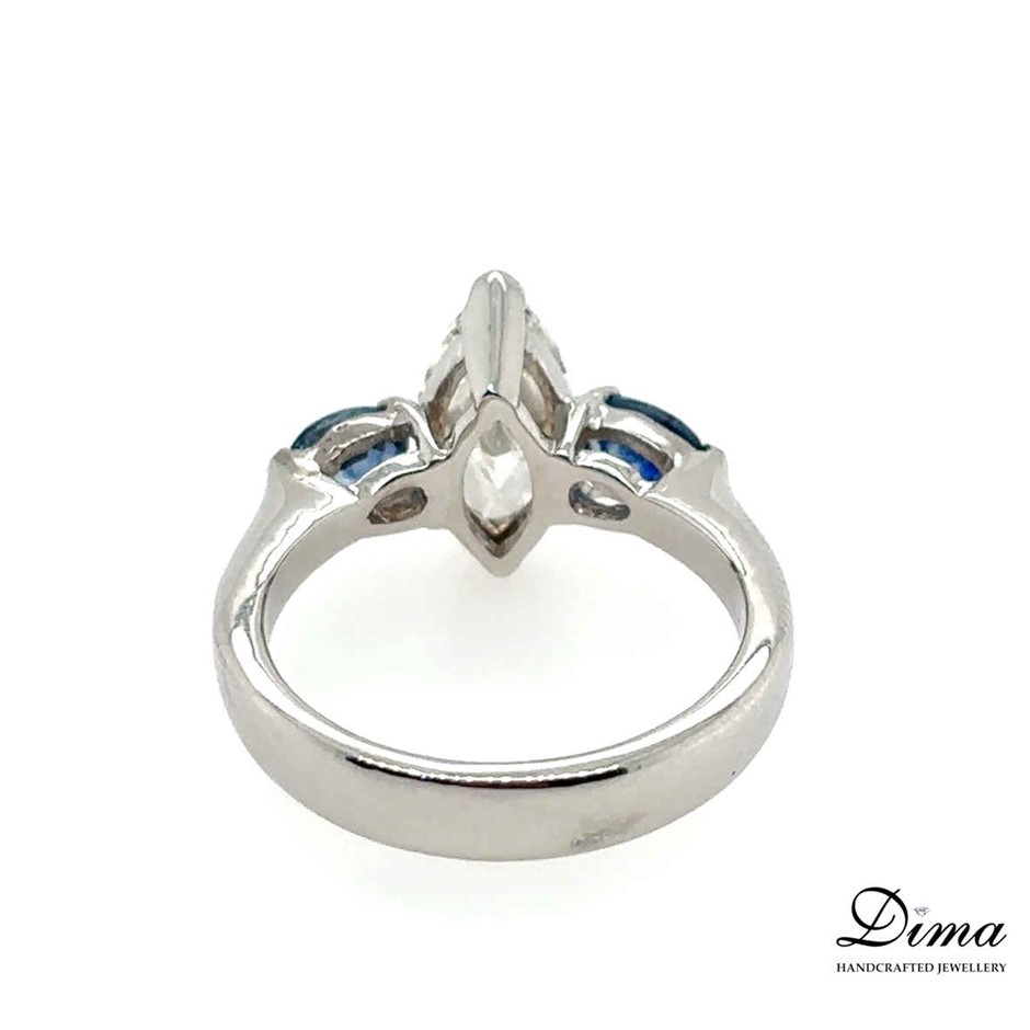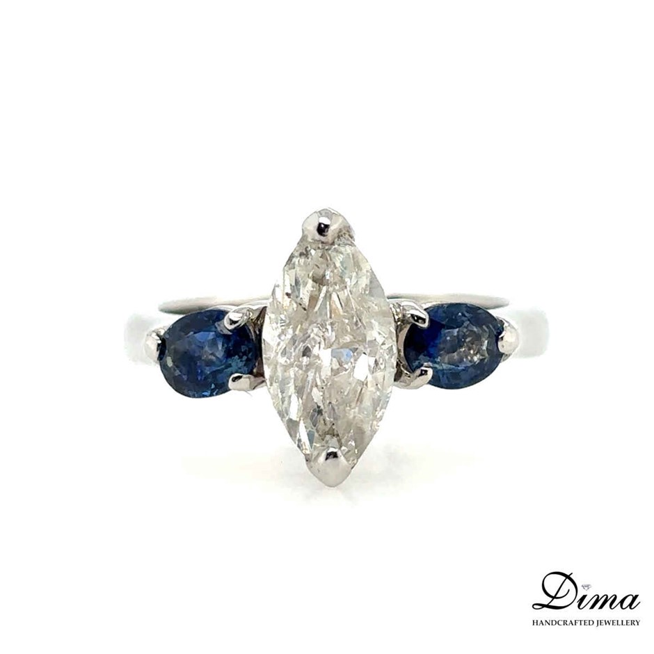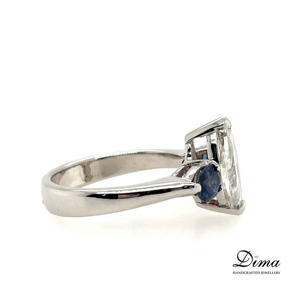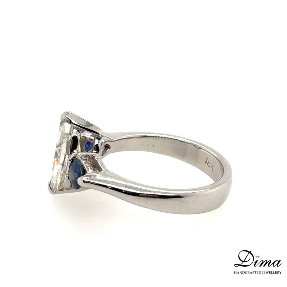 1.63ct J/I1 With CGL Cert. Dia. & 0.88ct Blue Sapphire Ring 18K White Gold