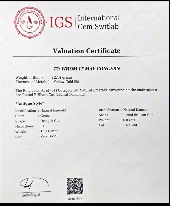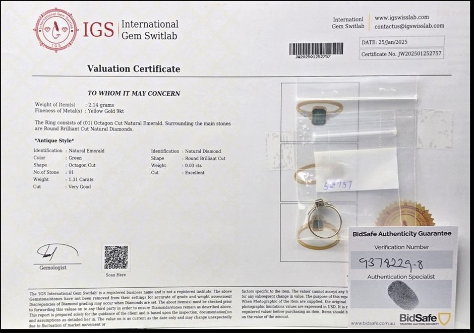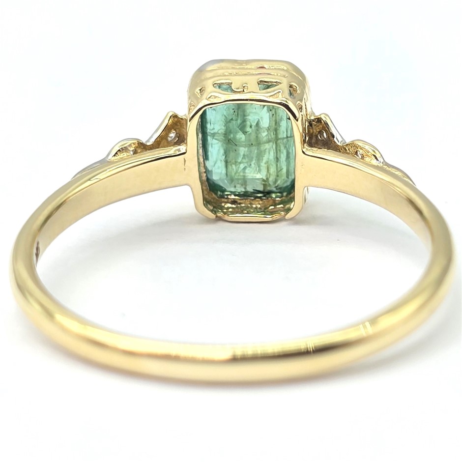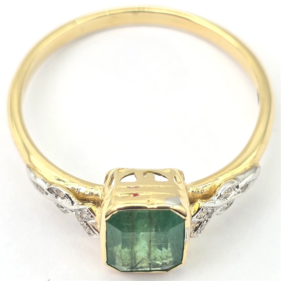 9CT YELLOW GOLD, 1.34TCW DIAMOND & EMERALD RING