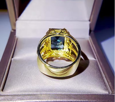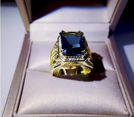 925 Silver Ring with 19.0ct Oval Cut Blue Simulated Diamond Stone (stamped)