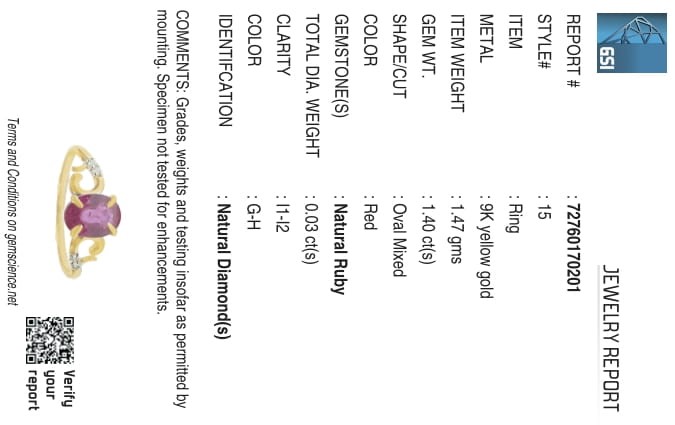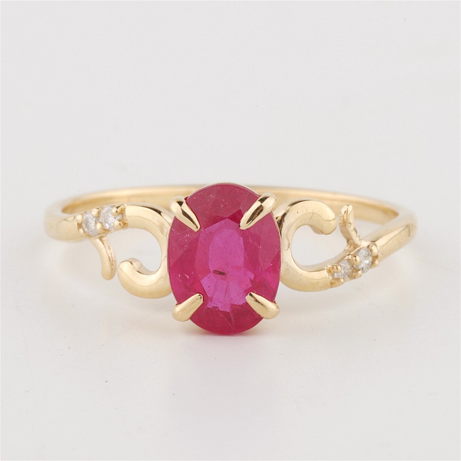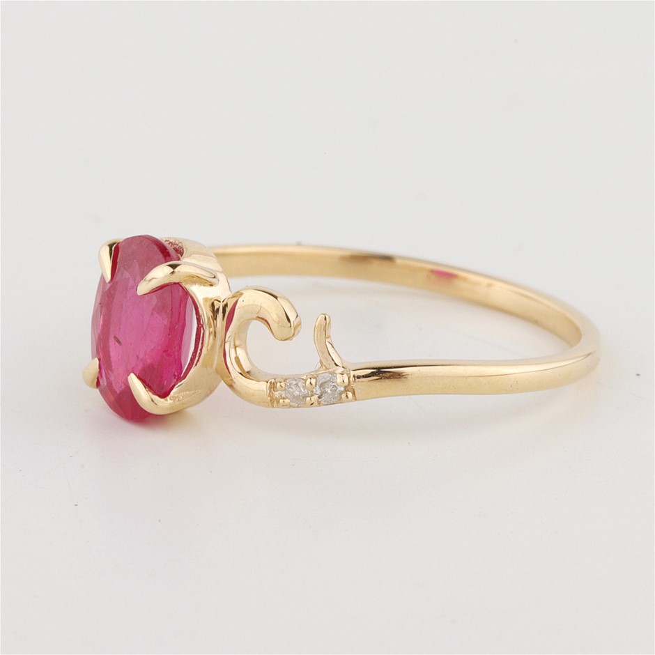 Certified Yellow Gold Natural Ruby & Diamond Ring