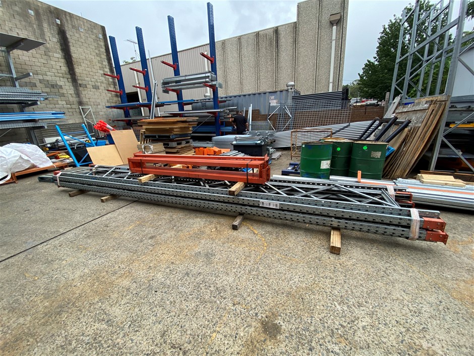 4 x Mac rack frames 6700mm x 840mm, 13 x beams 2600mm x 60mm