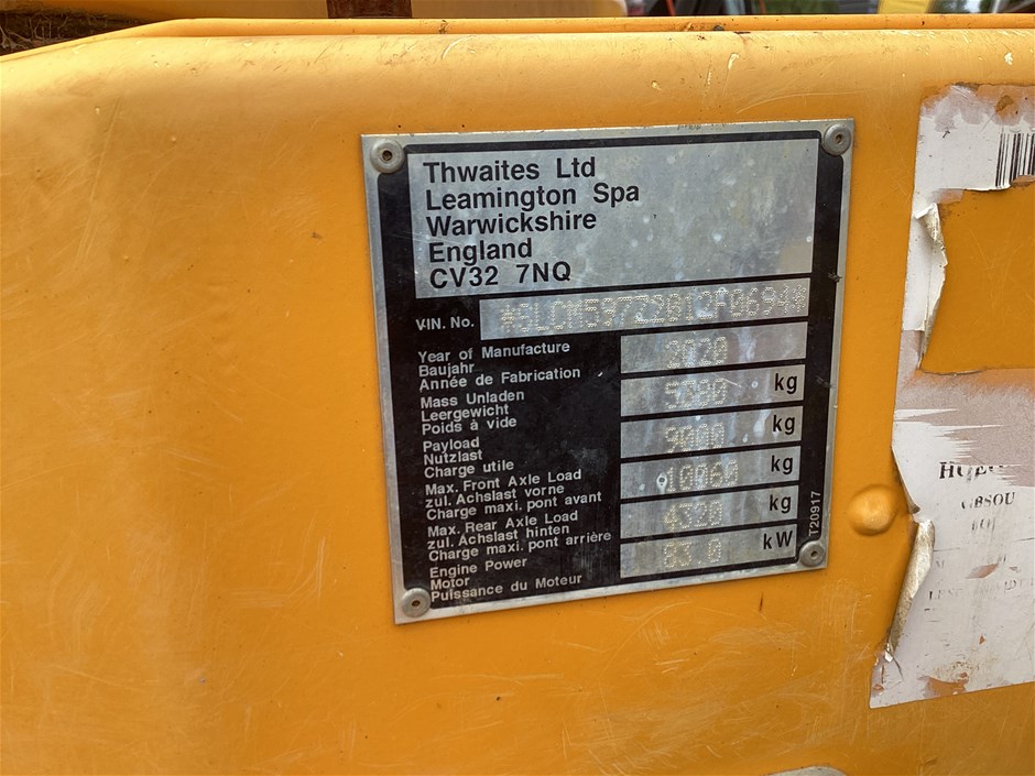 Thwaites 9 Tonne Site Dumper