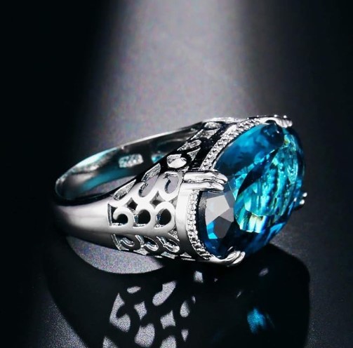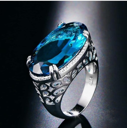 925 Silver Ring with 19.0ct Oval Cut Blue Simulated Diamond Stone (stamped)