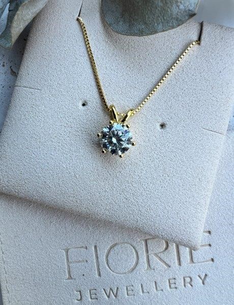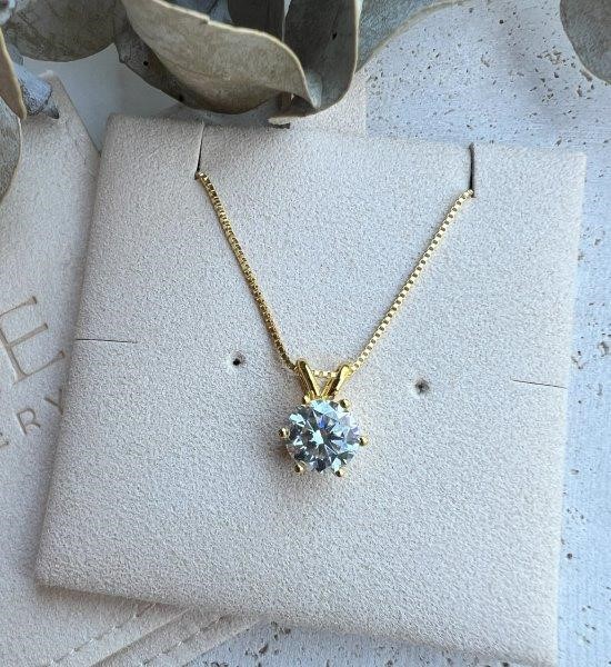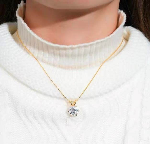 Certified 2ct Moissanite Pendant Necklace 18K Gold Plated Sterling Silver