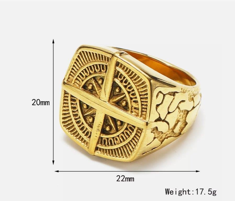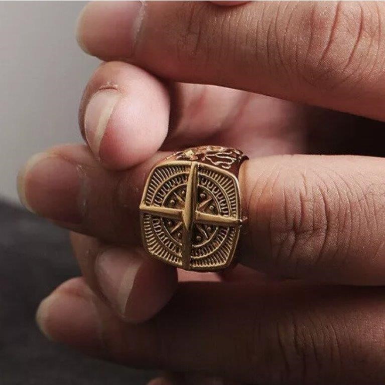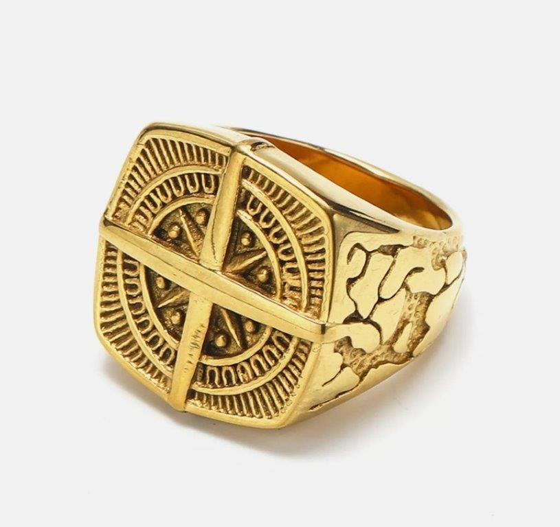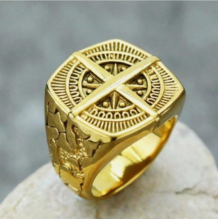 18k Real Gold Plated VIKING Compass Cross Ring