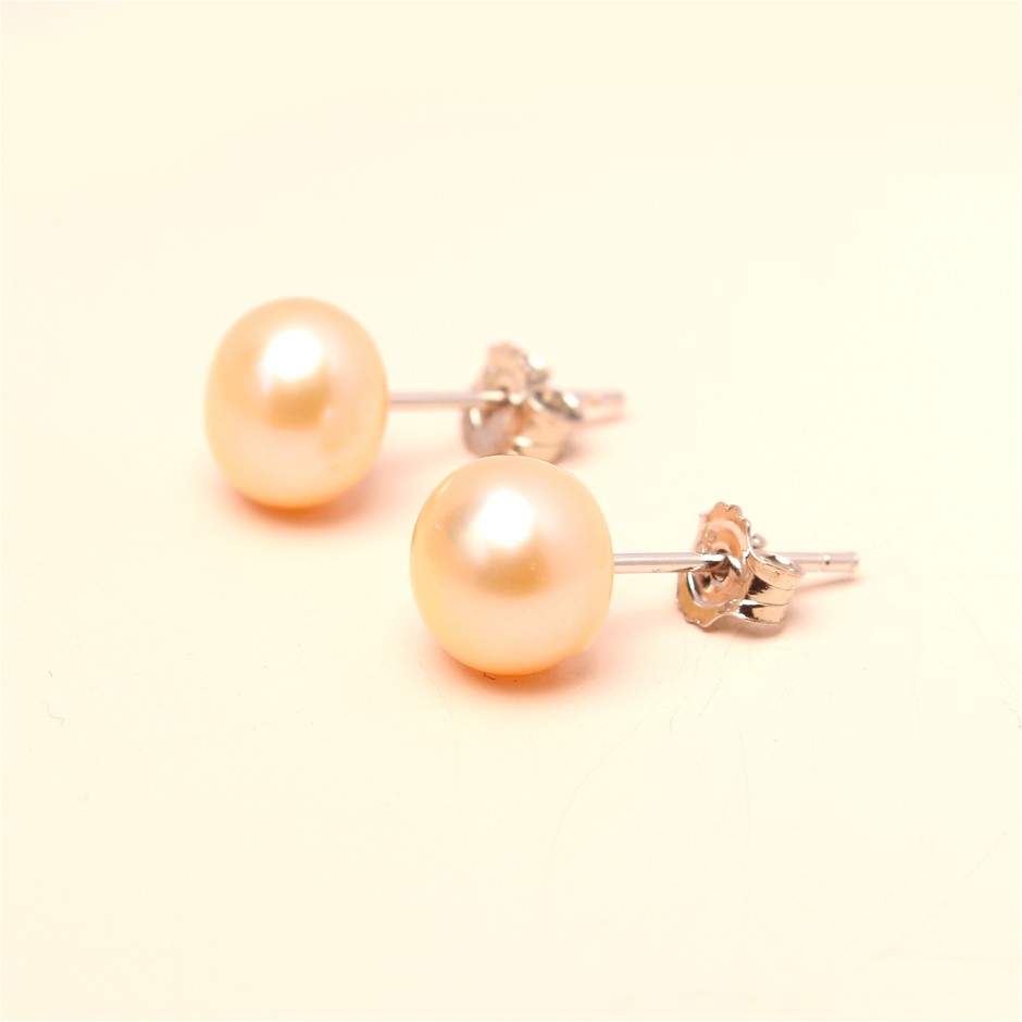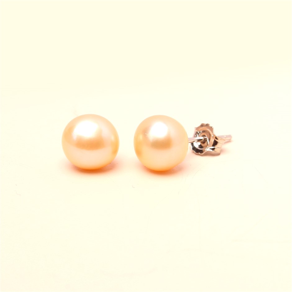 Elegant Freshwater Peach Pearl Stud Earrings - Two Pairs