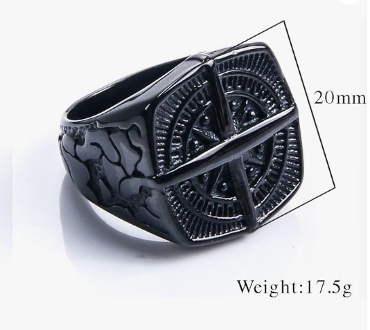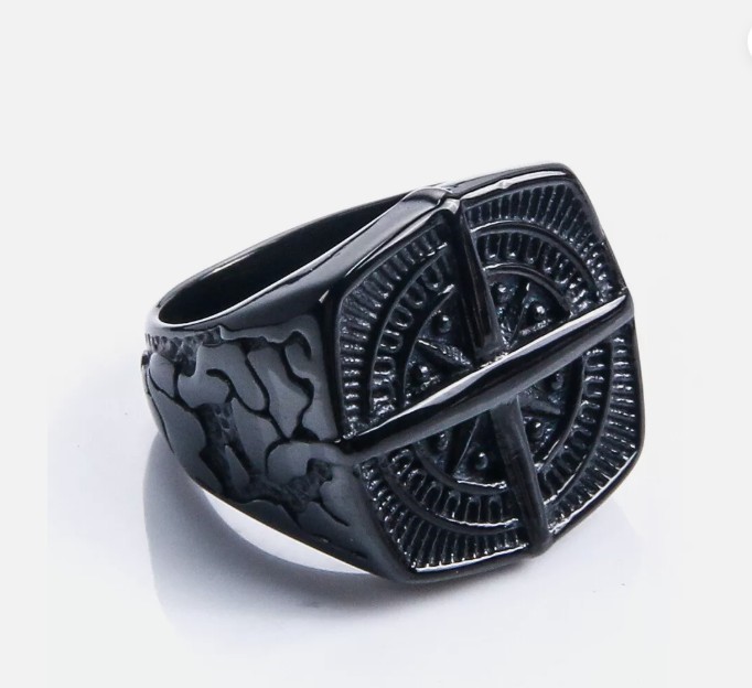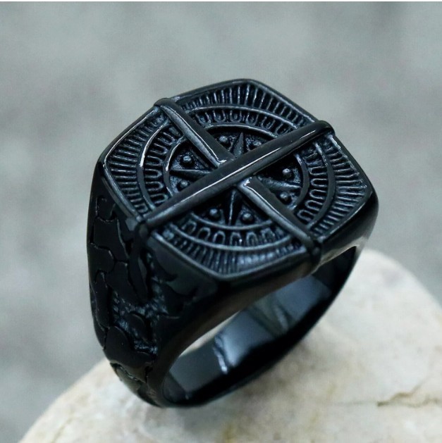 Viking Black Compass Cross Ring