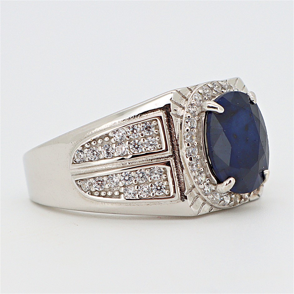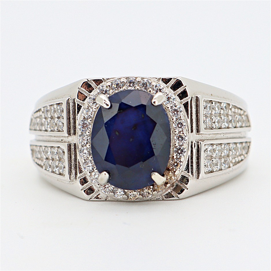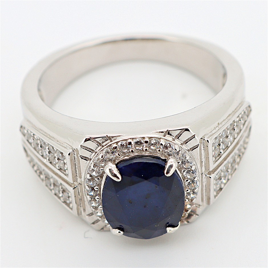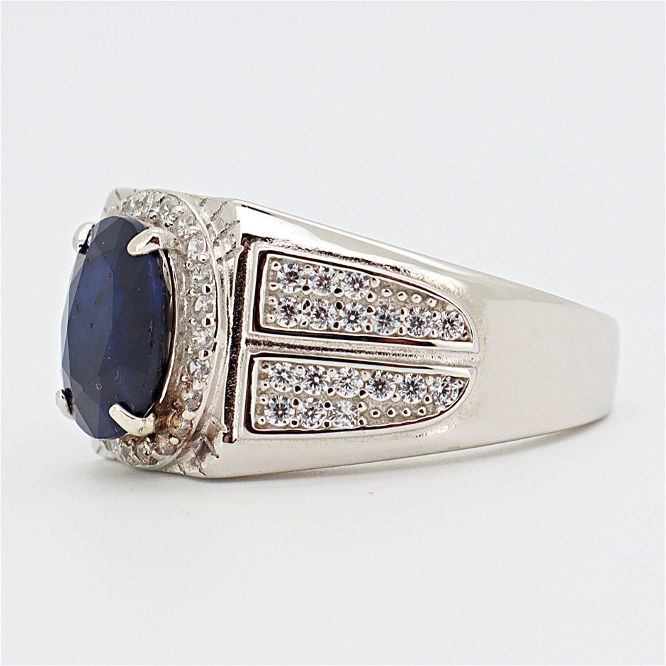 2.97 Carats Sapphire Ring on 925 Silver