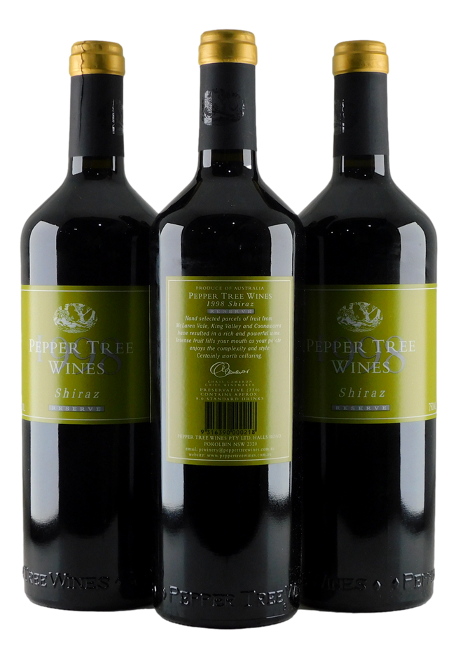 Peppertree Reserve Shiraz 1998 (3x 750mL), SEA.
