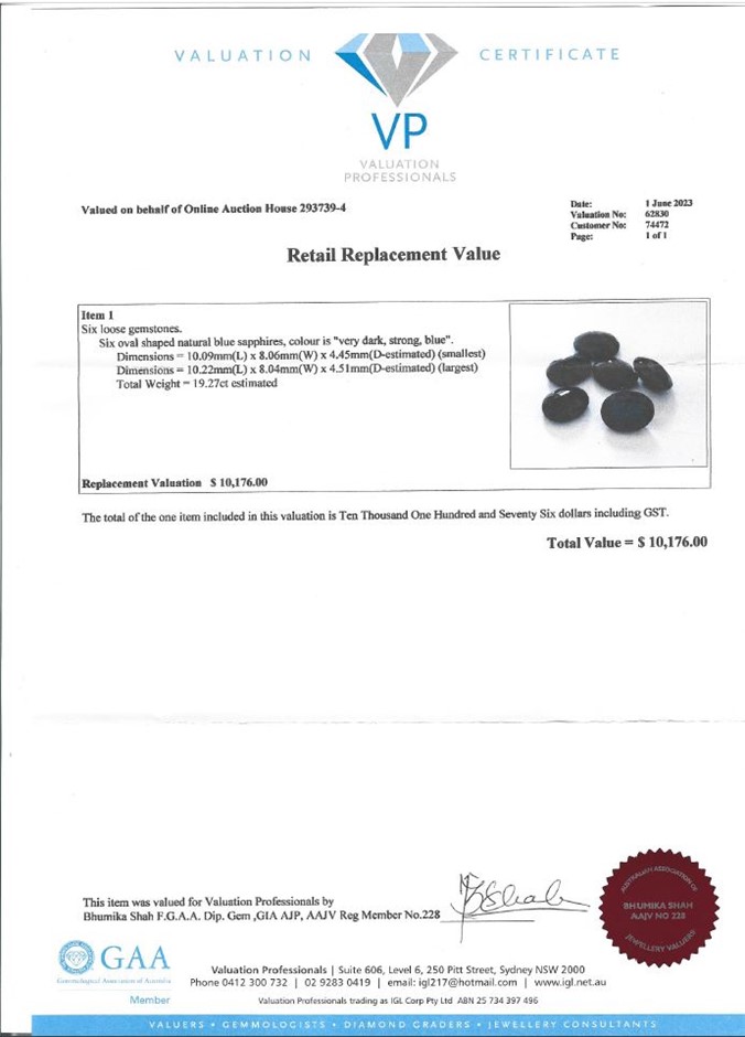 Higher value items sold by Grays Online come with a Certificate of Authenticity which lists an Estimated Replacement Valuation which is based on current Australian market forces.
