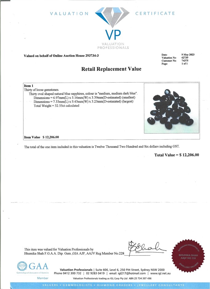 Higher value items sold by Grays Online come with a Certificate of Authenticity which lists an Estimated Replacement Valuation which is based on current Australian market forces.