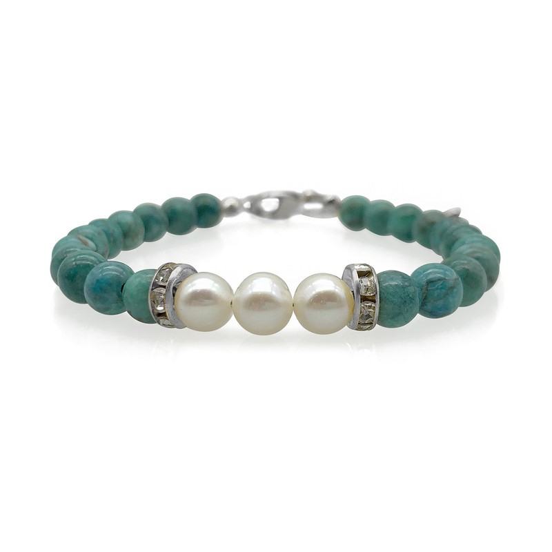 Natural 7-8mm Freshwater Pearl & African Jasper Turquoise with Real Platinum Plated Bracelet.
