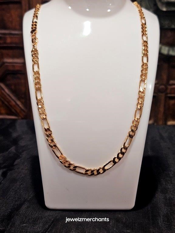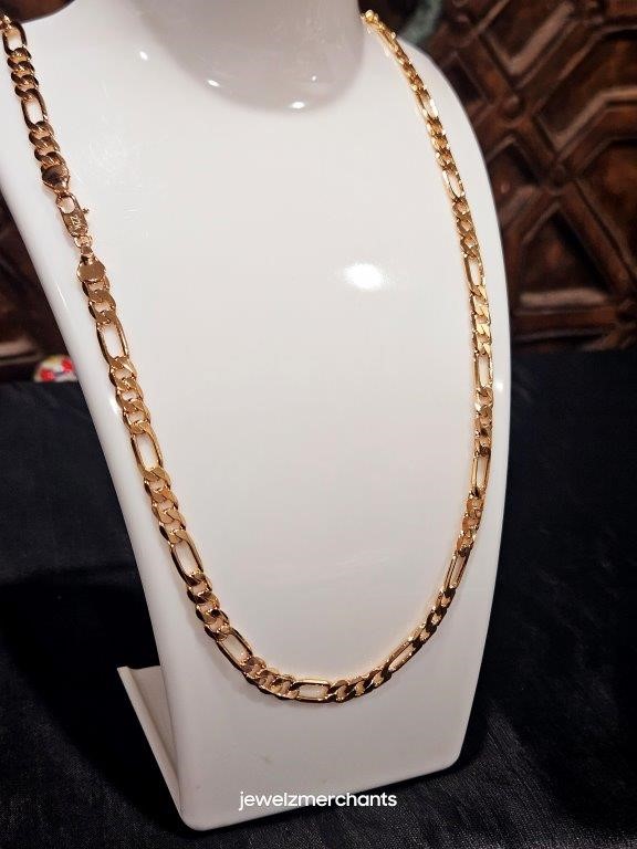 • Italian 22k Rose Gold Filled Figaro chain for Women and Men with 22k stamped.