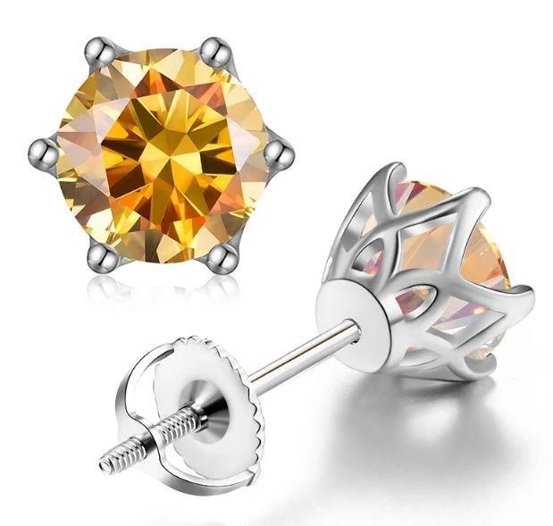 1.0CT GRA Moissanite Golden Yellow 18k Real Gold Earring