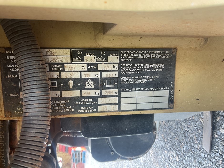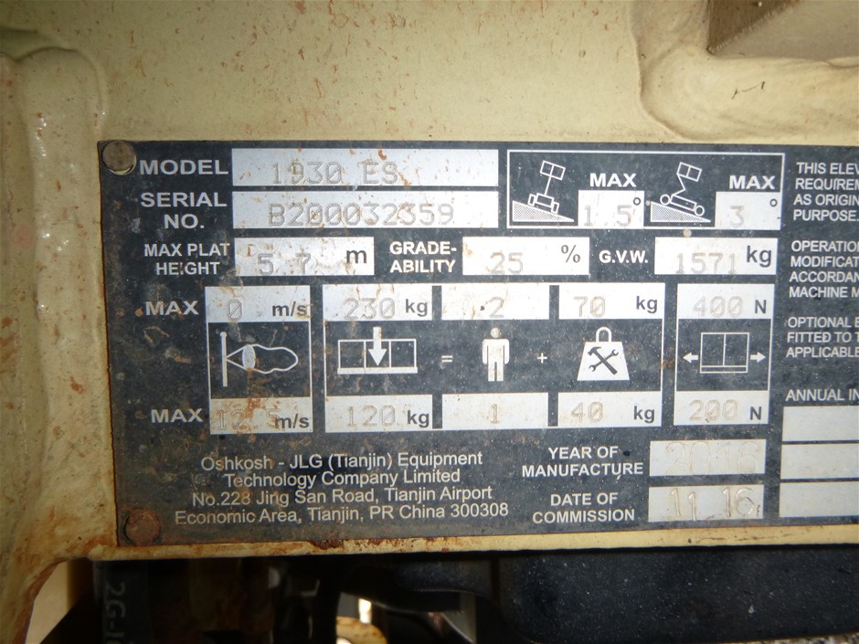2016 JLG 5.8M (19FT) ELECTRIC SCISSORLIFT 1930ES