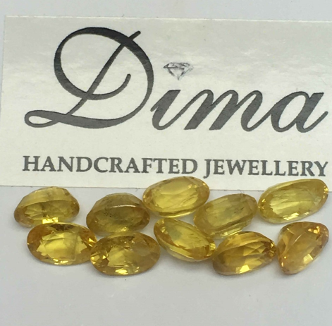 Ten loose gemstones.