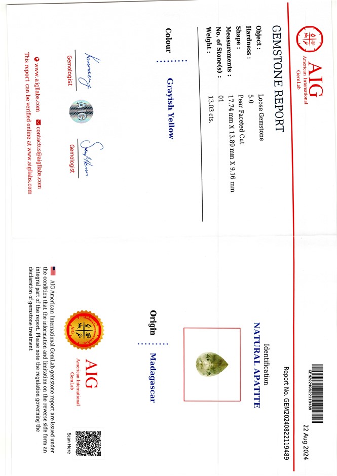 | Part of Sale | AIG Certified Gemstones Collection | ||||