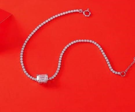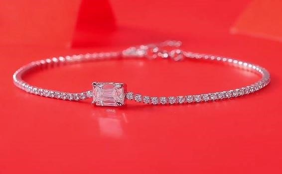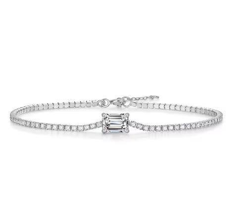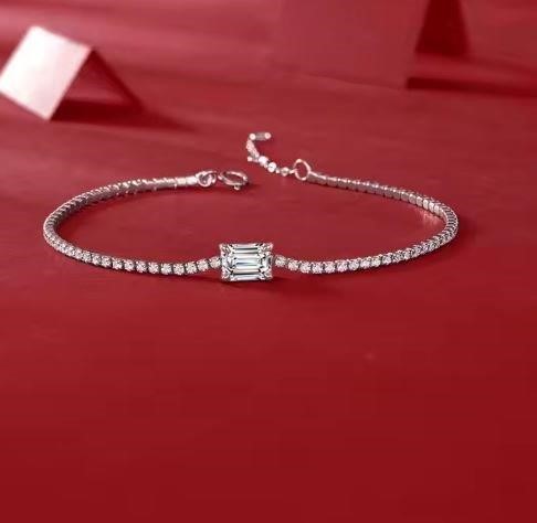 • Discover our Moissanite Diamond White Brilliant Cut Emerald Cut Tennis bracelet, crafted with high-quality solid 925 sterling silver and plated in 18K white gold. This luxurious piece, stamped S925, comes with a GRA Certificate and is 100% guaranteed to pass the diamond tester.